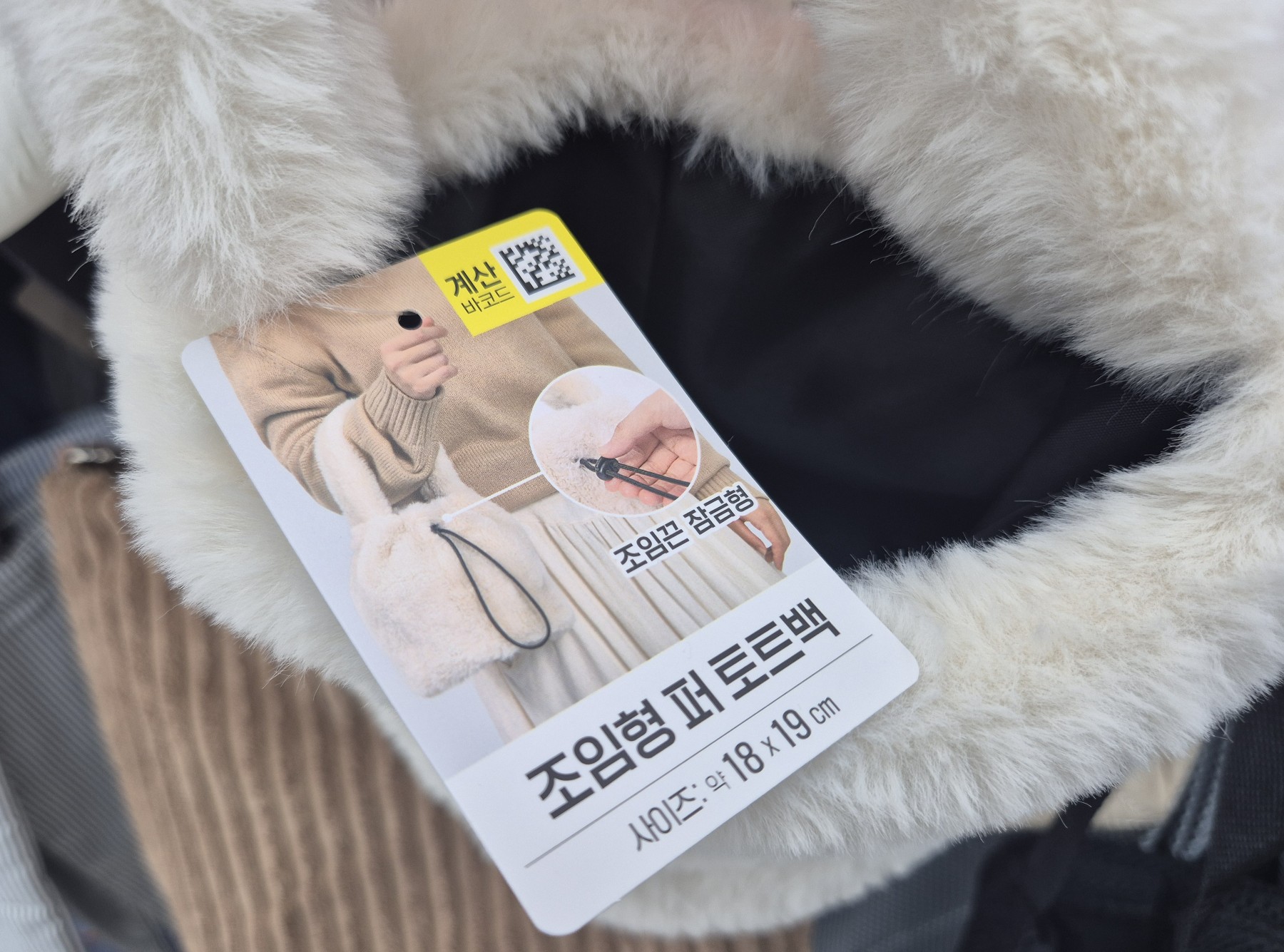 단돈 3,000원이라는 놀라운 가격에도 불구하고, 풍성한 털 소재, 세련된 조임형 디자인, 그리고 실용적인 탄탄함까지 모두 갖춘 이 토트백은 출시 직후부터 패피들 사이에서 **'3천원 명품백'**이라는 애칭으로 불리며 SNS 대란템으로 등극했어요. 겨울 코디를 한 단계 업그레이드시키고, 소지품을 안전하게 보관하고 싶은 모든 분들에게 이 토트백은 필수 소장템이 될 것입니다.